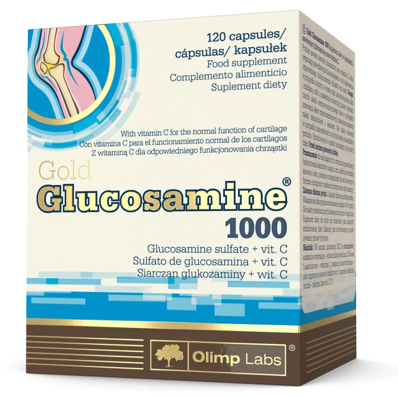 Olimp Gold Glucosamine 1000 to wysokiej jakości suplement wspierający elastyczność i wytrzymałość stawów. Dzięki siarczanowi glukozaminy przyspiesza regenerację chrząstek, zmniejsza sztywność i poprawia komfort ruchu, szczególnie u osób aktywnych i w wieku dojrzałym.