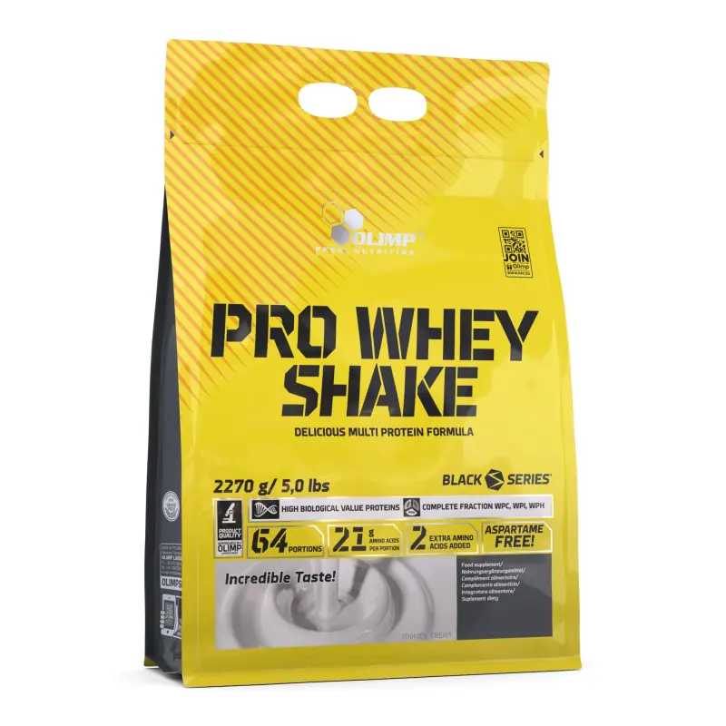 Olimp Pro Whey Shake to wysokiej jakości odżywka białkowa stworzona z trzech źródeł białka, wzbogacona L-glutaminą i tauryną. Wspiera rozwój mięśni, regenerację oraz spalanie tłuszczu, zapewniając optymalne środowisko anaboliczne po treningu.