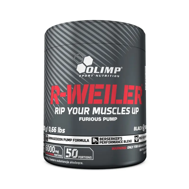 Olimp R-Weiler to suplement przedtreningowy, który zapewnia maksymalną wydolność, koncentrację i pobudzenie. Dzięki synergii beta-alaniny, L-tyrozyny, jabłczanu cytruliny i kofeiny pozwala trenować bez ograniczeń i osiągać lepsze wyniki fizyczne.