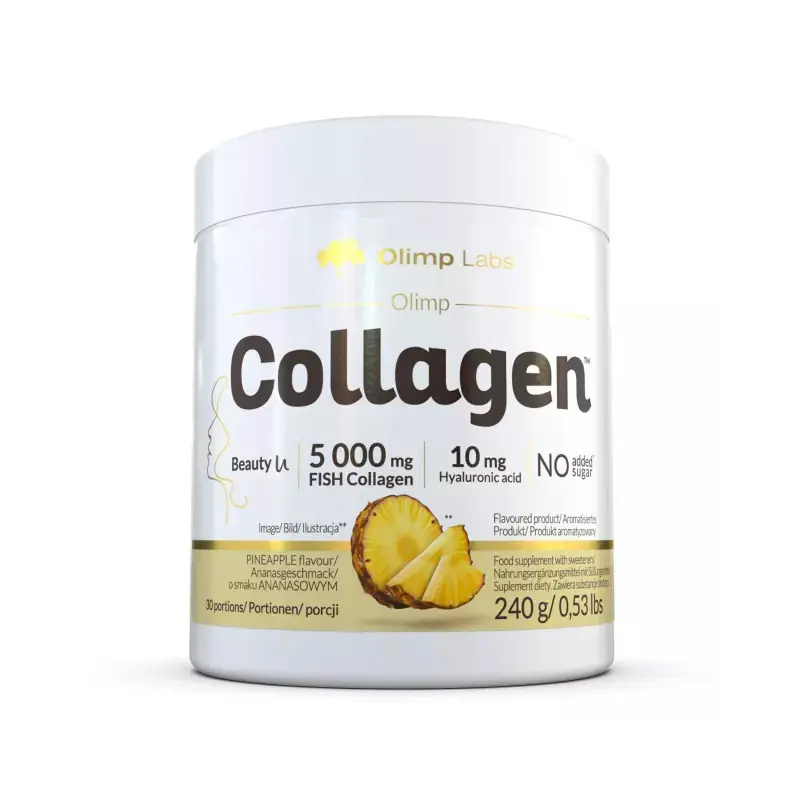 Olimp Collagen to zaawansowany suplement diety, który dostarcza wysokiej jakości hydrolizatu kolagenu rybiego ECOllagen®, kwasu hialuronowego, witamin i minerałów, wspierając elastyczność skóry, zdrowie włosów oraz regenerację stawów. Odbuduj tkanek łącznych i popraw komfort codziennego życia!