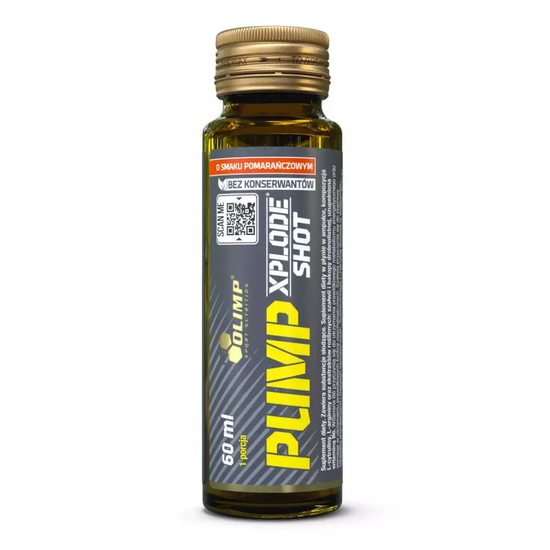 Olimp Pump Xplode Shot to przedtreningowy suplement w płynie, który zapewnia maksymalną pompę mięśniową, wzrost siły i wytrzymałości oraz lepszą koncentrację, dzięki starannie dobranej formule bez kofeiny, idealnej do treningów o każdej porze dnia.