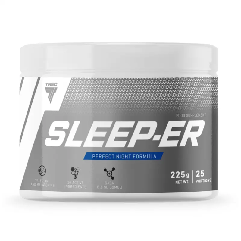 Trec Sleep-Er to kompleksowy suplement na noc, który wspiera szybsze zasypianie, głęboki sen i regenerację po treningu. Połączenie melatoniny, GABA, DAA oraz minerałów pomaga redukować napięcie, poprawiać równowagę hormonalną i maksymalizować efekty odpoczynku.