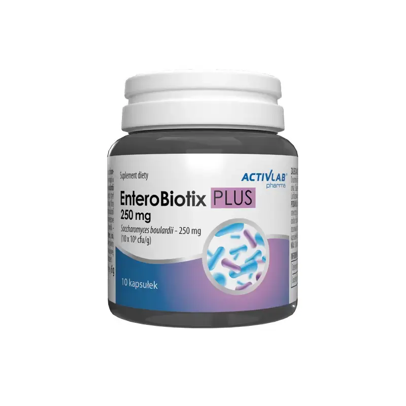 Activlab Pharma EnteroBiotix PLUS 250 mg to preparat probiotyczny wspierający równowagę mikroflory jelitowej podczas i po antybiotykoterapii. Zawiera unikalne szczepy bakterii oraz naturalny prebiotyk, który wspomaga trawienie i wzmacnia odporność organizmu.