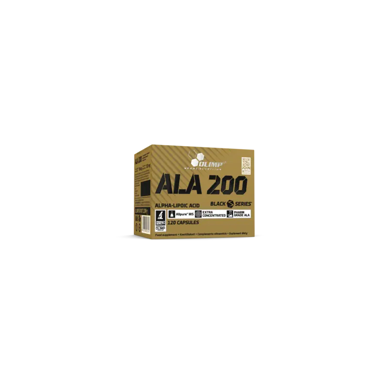 Olimp ALA 200 to suplement diety, który wspomaga metabolizm, ochronę komórek i funkcjonowanie układu nerwowego. Zawiera 200 mg kwasu alfa-liponowego (ALA) w każdej kapsułce, który działa jako silny antyoksydant, wspiera produkcję energii i regenerację organizmu.