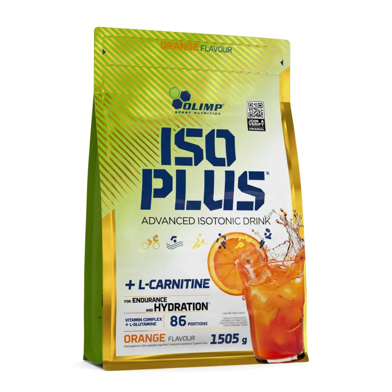 Olimp Iso Plus Powder + L-Carnitine to izotonik w proszku z elektrolitami i L-karnityną, który wspiera nawodnienie, wytrzymałość i regenerację podczas wysiłku. Pomaga utrzymać energię, równowagę mineralną i komfort treningu w każdej aktywności.